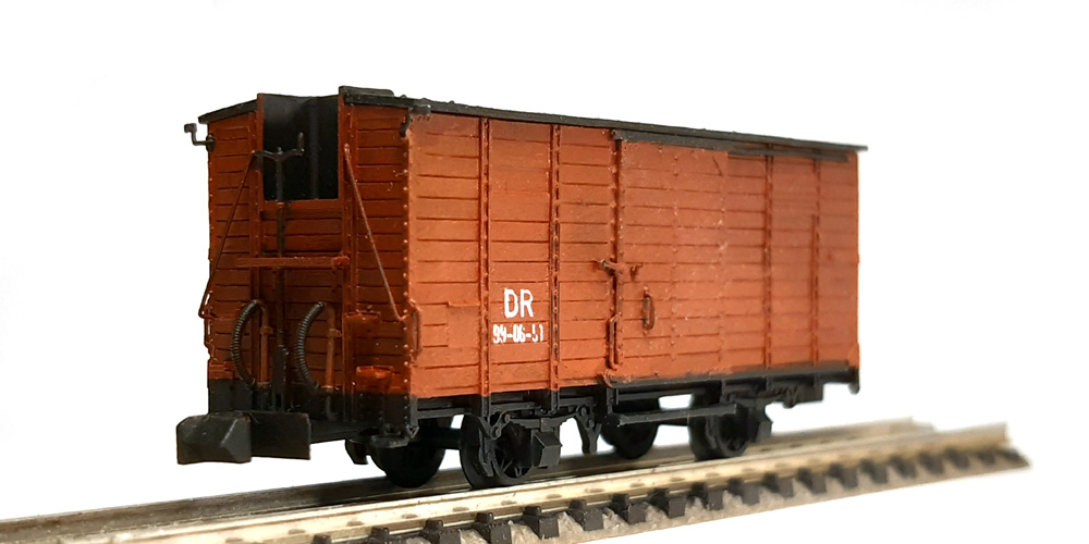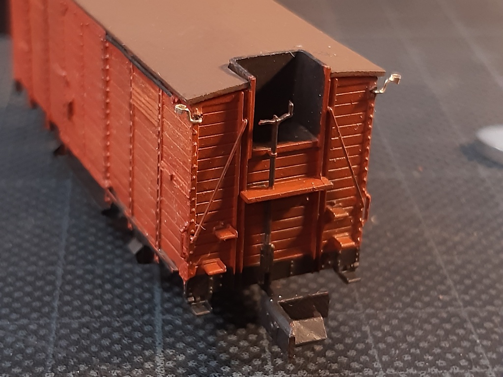 Für einen passenden Gesamteindruck wurden die breiteren früheren Bretter angedeutet, da sich die heutigen sehr schmalen Wandbretter mit vielen feinen Fugen im Modell kaum umsetzen lassen. Dabei würde die charakteristische Lüftungsabdeckung im Verhältnis zu den Fugen fast unsichtbar werden. Weiter wurde für die längeren Griffe auf der Bremserseite die Drahtversion beibehalten.