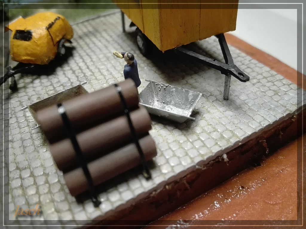 Das ganze trocknet nun ne Weile, mache ich schnell mal einen Bauwagen und den anderen "Kleinkram" fertig.