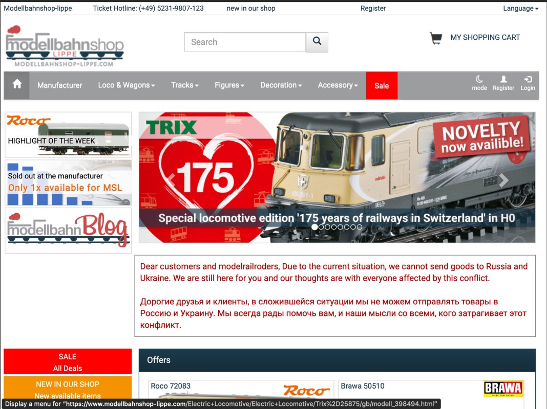 Modellbahn-Shop im Detmold, kleines bis mittleres Ladenangebot in TT, auch Zubehör. Online-Shop wird auch geboten.