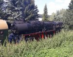 Das hier ist die Plagwitzer 52 8154 mit Sonderzug auf Erzgebirgsrundfahrt am 4.9. , kurz hinter St.Egidien auf der Rückfahrt nach Leipzig .