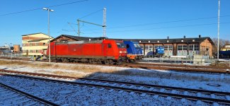 Nach langer Zeit war mal wieder eine 345 der Press bei uns. 185 raildox draußen und 187 im Schuppen. 642 aus Dresden in MV.
