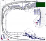 Die Anbindung der Mitropa- und Postgleise in Bernds letztem Entwurf finde ich nicht optimal. Da konzeptionell bedingt das Umsetzen der Rangierlok im "Hauptbahnhof" nicht in Frage kommt, sollten beide Bereiche per Sägefahrt über das Ziehgleis bedient werden können. Alle Weichen weisen also mit der Spitze in Richtung Ende des Ausziehgleises.