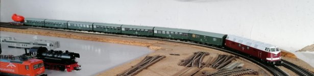 Ich schrieb (heute) schon weiter oben, "Dry Fluid" in die Achslager und die Dinger rollen. Und die Wagen haben noch die originalen Achsen.[...] nur ein Drittel der Strecke.