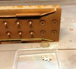 Für ein anderes Projet habe ich mal 100 Magneten mit 1 mm Durchmesser beschafft, was sich dann aber zerschlug. Sie lassen sich aber prima in ein 2 mm Evergreenrohr kleben, welches auf der anderen Seite mit dem Peho Bohrer angesenkt wird. Meine Teststücke hielten dabei 3 bar Druck aus der Puste stand, ohne zu wackeln. Mit 3 mm Länge sitzen die Hülsen gut auf den Stummeln. Mit der Resinsäge und der passenden Lehre war die Serienproduktion von 40 Stück an einem Abend erledigt. Das Aufstecken der Hülsen ist zwar etwas fummelig, aber immer noch besser als das Putzen. :)