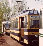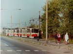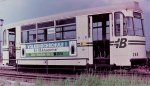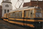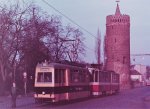 Noch einmal Triebwagen 160. Jahre später macht Tatra 184 Werbung für das Brandenburger Theater.