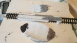 Ich nehme dazu die empfohlene DAS Modelliermasse, etwas nacharbeiten nach dem Trockenen muss schon sein. Die leichten Wellen bekomme ich nicht weg, ist nach Färben und Alterung aber nicht mehr auffällig.
