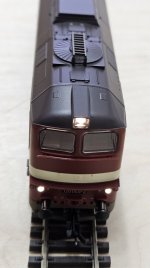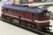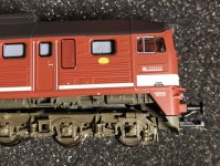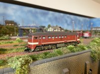 Zur Lok: Meine analoge Variante heute dann direkt ausgepackt, die Anlage fix von digital auf analog umgeswitcht, zum einfahren, und ich muss sagen ich bin positiv überrascht. Sie fährt schön geschmeidig, ist nicht laut, hat aufgrund der kleinen Schwungmasse natürlich fast keinen Auslauf (stört mich nicht, der Decoder ist schon geordert). Dass sie eine "alte" Schnittstelle hat, juckt mich genauso wenig, wie das fehlende rote Schlusslicht, sie zieht bei mir eh Zementsilowagen und hätte das Licht damit eh nicht an. Zu den Verwitterungen (so wurde sie ja beworben) muss ich aber sagen, dass mir das matte dennoch kräftige Rot nicht gefällt, fleckiger bzw ausgeblichener hätte es schon sein können (also hellere und dunklere Stellen. Auch die grün/braunen Drehgestelle passen nicht wirklich ins Bild, hier werde ich auch Abhilfe schaffen müssen. Das Dach sieht gelungen aus, hat jedoch, wie weiter vorne schon jmd berichtete, einen violetten Stich. Ich hätte es mir ebenfalls etwas fleckiger vorgestellt. Eben verwittert, wie beworben. Nichtsdestotrotz behalte ich die Lok und finde sie recht gelungen. Verbesserungen gehen immer.