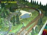 Wieder Angefangen mit einem komplettem Neubau hatte ich 1998 mit dem Motiv eines in sich leicht verschlungenem Hundeknochen, wobei die Mitte des Knochens der Bahnhof mit jeweils 2 Gleisen in beide Richtungen darstellt. Parallel zu den Bahnhofsgleisen gibt es ein Einfahrtgleis in ein Rangierbahnhofsteil und auch natürlich ein Ausfahrtgleis auf die Hauptstrecke.