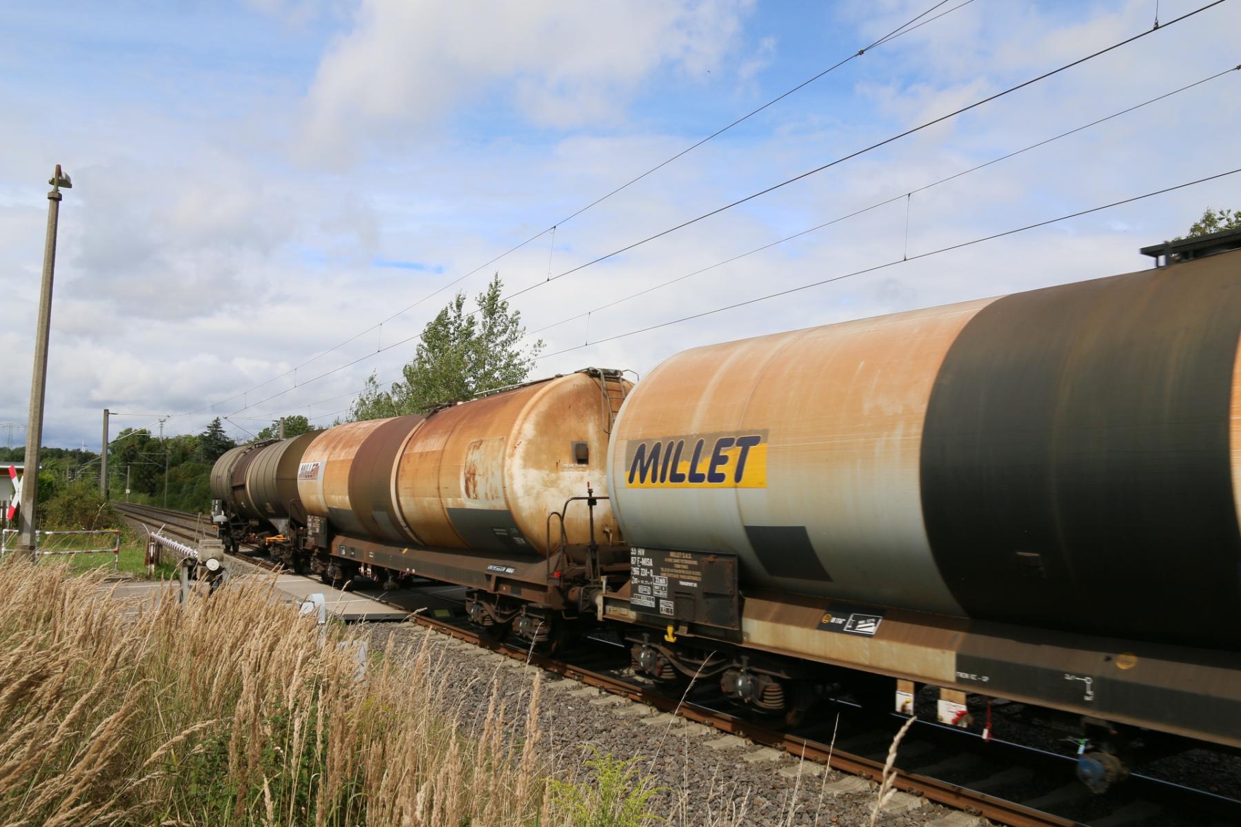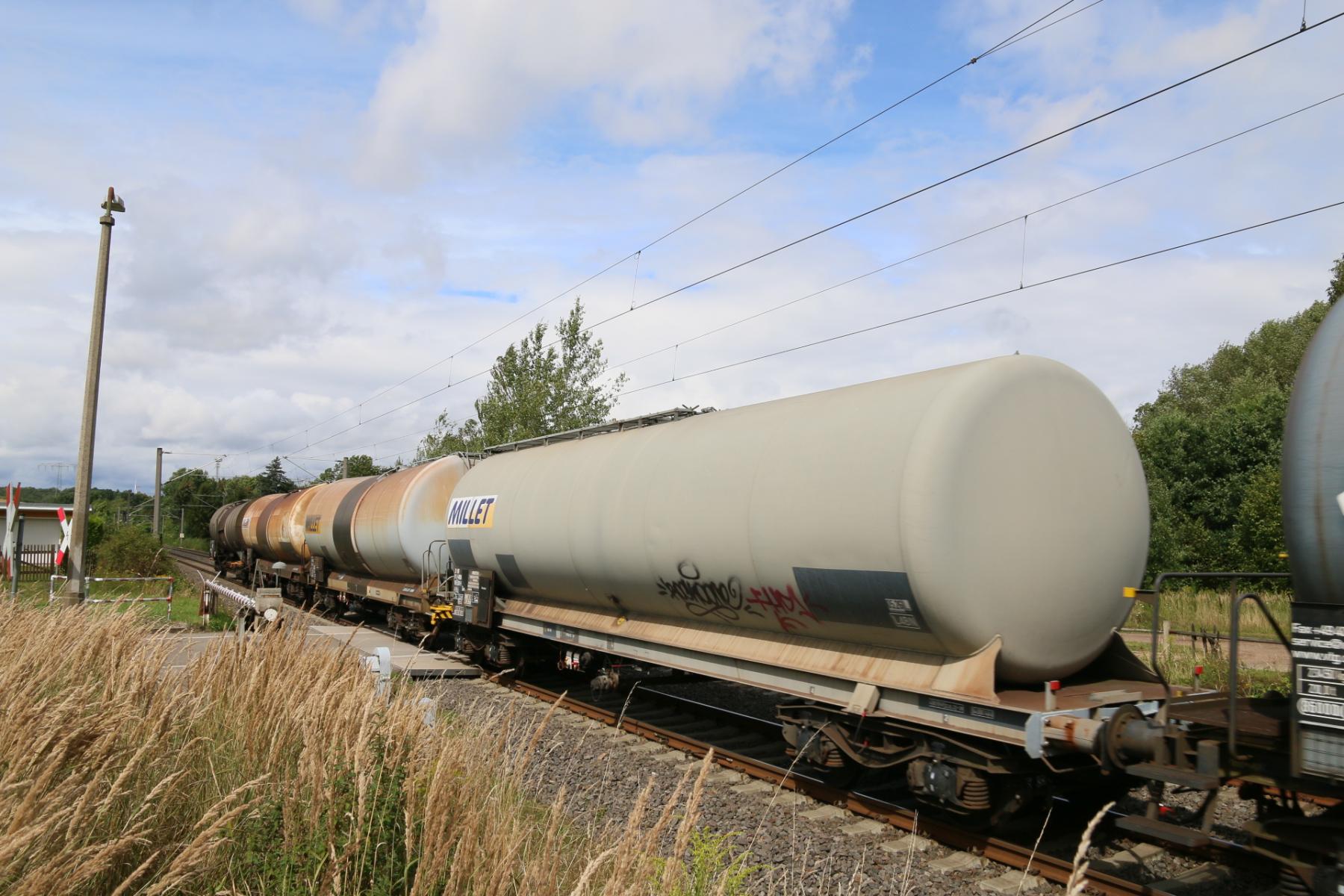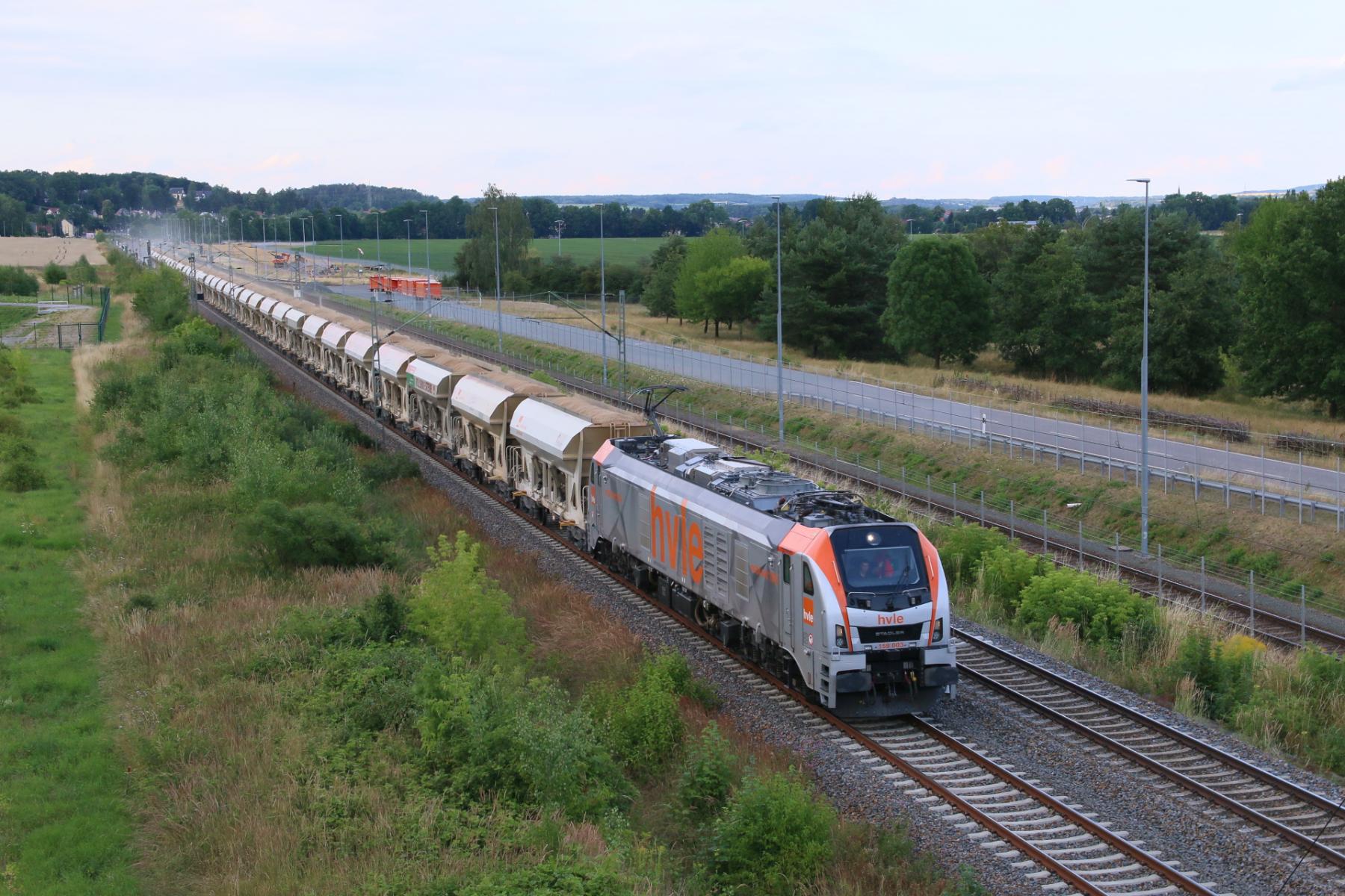 Am 20.7.2023 aber mal mit ner langen Leine Faccns-Schüttgutwagen , ein typischer HVLE -Schwerlastzug .