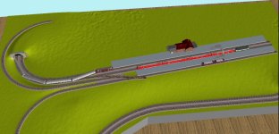 Ich will Deine Hilfsbereitschaft wirklich nicht ĂŒberbeanspruchen aber wĂŒrde es helfen die Platte noch ein wenig zu verbreitern?Hm, ich habe gerade ein paar Ideen durchgespielt, aber das Ganze geht sich mit den Steigungen nicht aus. Bei ZuglĂ€ngen ĂŒber einem Meter sollte man in jedem Fall unter 3%. Zudem mĂŒssen alle Abstellgleise waagerecht liegen.![]()