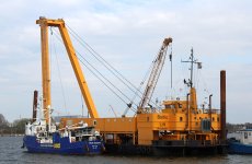 Schwimmkran mit Heimathafen Rostock: BALTIC LIFT (Bj. 1974 Münzfeldtwerft Cuxhaven) der Baltic Divers Germany mit einer max. Hublast von 200t. Er musste die Tage ran, um den Kutter LUNA ROSSA (ex. SAS 226 EUGEN LEVINE, Bj. 1951, VEB Boddenwerft Damgarten) zu bergen. Dieser war bei den letzten Stürmen Leck geschlagen.