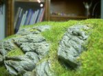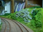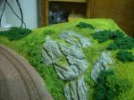 So, weiter ging's mit dem Landschaftsbau. Zuerst die zurecht geschnitzen Felsen mehrfach mit diversen Grautönen behandelt...man sieht hier allerdings nur die erste, fast schwarze, Grundierung...
