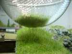 Ich muss sagen, das Gerät, übrigens als Bausatz recht leicht zu bauen, hat mich überzeugt. Die Grasfasern von Auhagen lassen sich (meine Meinung) besser aufbringen als die von Noch. Leider hat Auhagen nur die kurzen mit ca. 2mm Faserlänge im Programm. Für die Stellen, die nun noch mit langen Fasern nachbehandelt werden, muss ich eben auf ein anderes Produkt ausweichen.