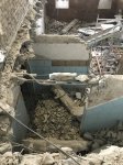 Bild 2110 03: Blick hinunter in den ehemaligen Kartoffelkeller (2. Untergeschoss), der verfüllt wird.