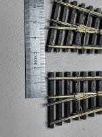 Wie schon erwähnt, ganz ohne bearbeiten der Schwellen ist eine direkte Verbindung nicht möglich. Die Schwellen müssen, sofern kein größerer Gleisabstand gewünscht ist, an beiden Weichen etwas gekürzt werden. Die Stellstangen müssen auch etwas gekürzt werden.