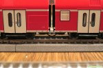 Die Tillig-Steifkupplung hat durchgehend die gleich Dicke, sitzt deshalb starr im Kupplungsschacht. Die nme-Kupplung ist am Ende oben und unten abgeschrägt und im Schacht vertikal beweglich, kann dadurch Höhenunterschiede ausgleichen.