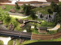 Diesmal wird im großen “L” aufgestellt, wo außer die zwei neue Module als Wendeschleife, auch zwei neue Module (Erweiterung Fluß mit Autofähre, und Weinberge mit Flußeinlauf, Fährhaus und Holz-Wassermühle) mit dabei seien wird.