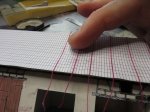 Wie lang ist der Abschnitt, welchen die mit Leim einstreichen kannst (am besten dann mit einem Stück Pappe verteilen), damit er noch weich genug ist, um die Dellen eindrücken zu können? Im Prinzip fängst Du an einer Seite an und die andere Seite rutscht dann immer nach. Bevor Du aber die letzte Profilierung machst, indem Du mit der Pinzette rechts und links am Faden entlang fährst, muss es schon eine gewisse Trockenheit haben, sonst verschiebst Du wieder alles.