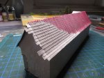 Ich weiß, wovon ich rede. Begonnen habe ich auf der anderen Seite an der Gaube. Nach drei Reihen war alles krumm und schief. Zum Glück habe ich es irgendwie wieder abbekommen. Ich hoffe, man sieht es am Ende nicht mehr. War eben lange her, dass ich mit dieser Methode gearbeitet habe.