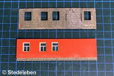 Nach dem, was @Stedeleben bisher hier zeigt, ist die Natursteinmauer aus dem Bausatz von Mamos/Auhagen durch eine zurechtgesägte Ziegelplatte ersetzt worden.