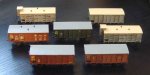 Vier gedeckte Wagen mit (Set 1) und vier Wagen ohne BH (Set 2). Alles war Stand der damaligen Zeit. Und heute sind es Raritäten.
