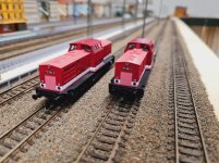 Also, ich habe die „rote“ Version ausgesucht weil es hier –gemessen an der „gelben“ Lok- die wenigsten Kompromisse gibt. Siehe hierzu auch meine Erläuterungen in der Kundeninfo zu dem was machbar ist und was eben leider nicht. Natürlich ist auch die „gelbe“ Lok interessant, aber derzeit kann ich leider nicht auf die markanten Geländer an der Lokfronten zurückgreifen. Die wegzulassen, das fällt zu sehr auf. Dagegen gehen die anderen Kompromisse der „roten“ Loks unter….