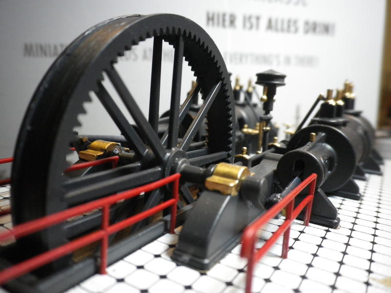 Armaturen und Handräder habe ich, entgegen der Empfehlung von Faller, die Fa. empfahl Alufarbe, in Messing abgesetzt.